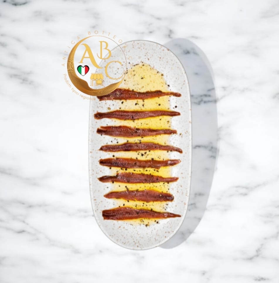 I Filetti di acciughe, custoditi in maniera naturale, vengono aromatizzati e conservati ritualmente ad arte.